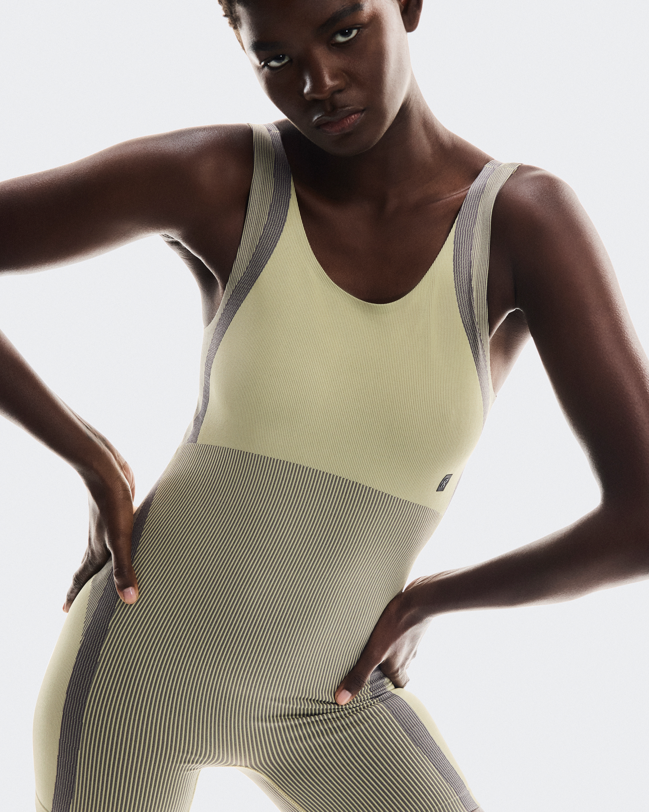 The two-tone yarn and structural design deliver a streamlined silhouette for a sleek studio-to-street look. Ideal for low-intensity workouts like pilates or barre, but you’ll want to wear it everywhere.