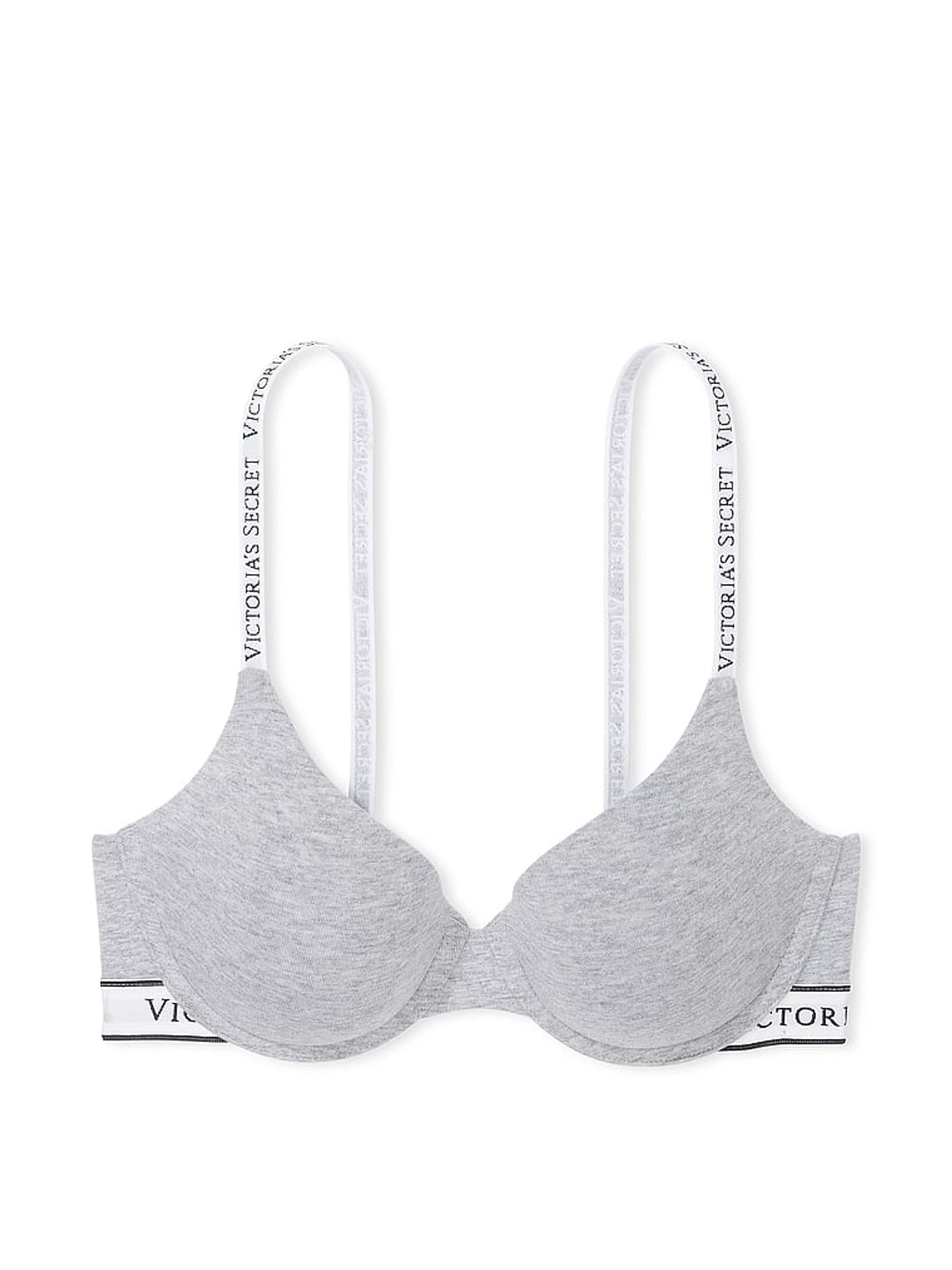 Medium Heather Grey Lightly Lined Demi Cotton Logo Bra