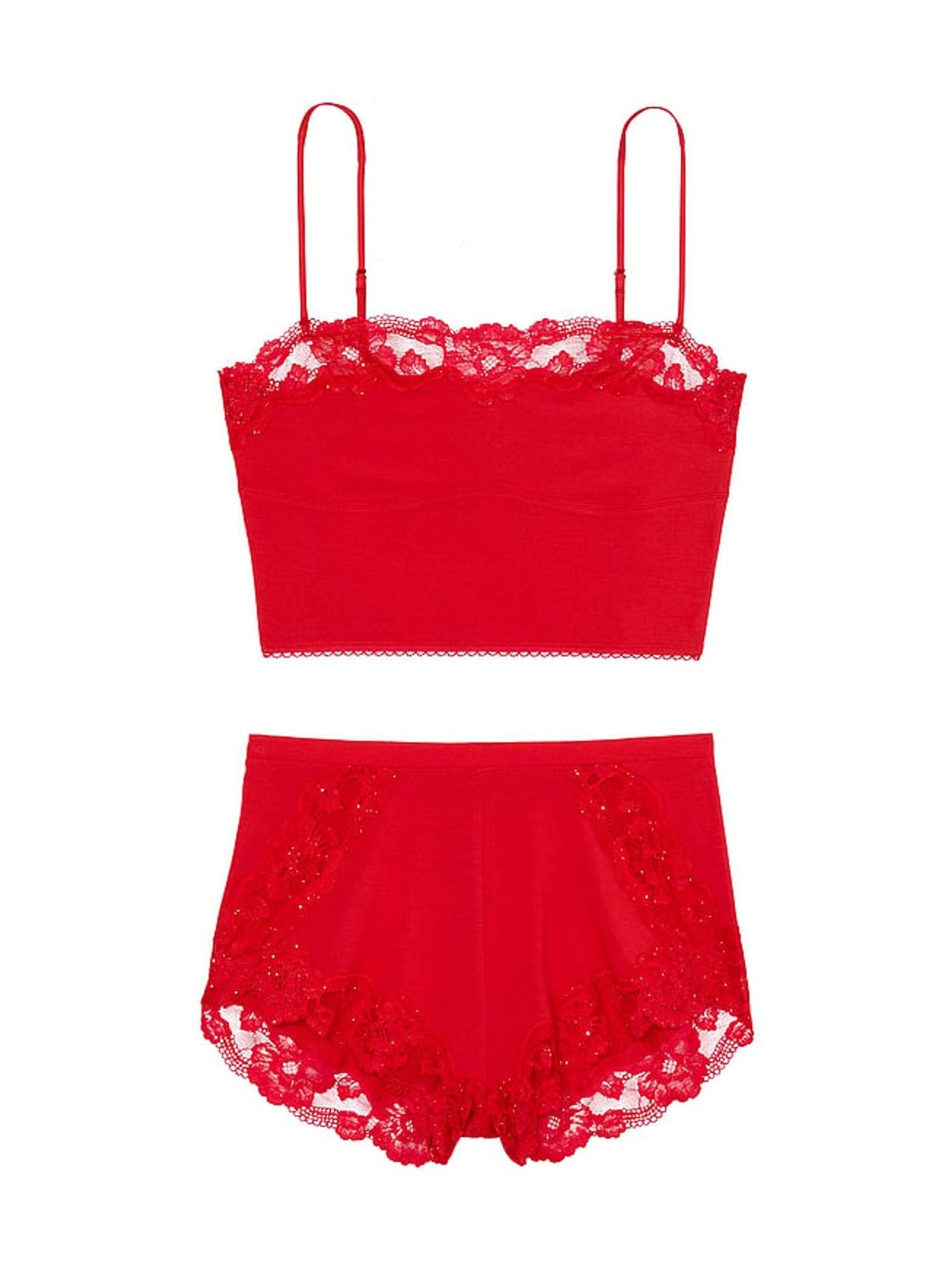 Lipstick Red Sequin Lace Straight Neck Modal Cami Set