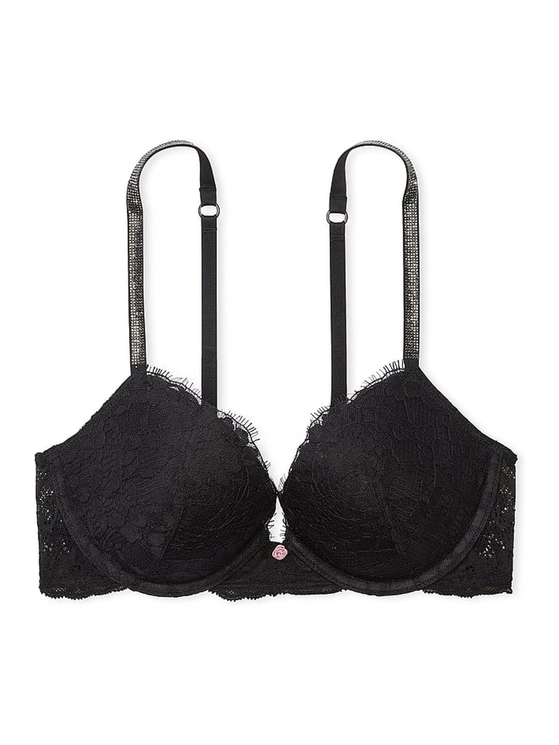 Black Monogram Bombshell Add 2 Cups Push Up Shine Strap Bra
