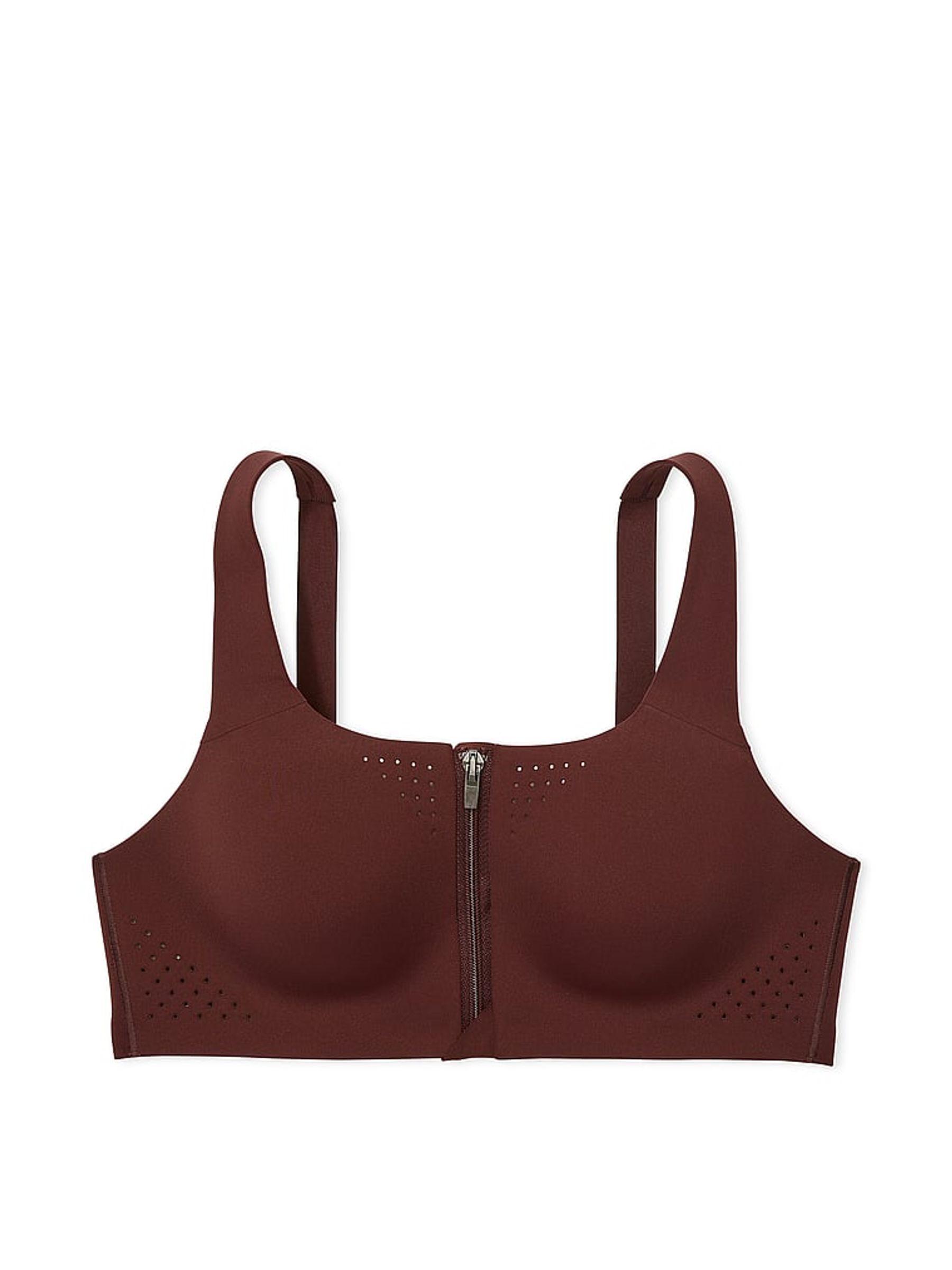 Burgundy Brown Strappy Back Front Close Featherweight Max High Support Sports Bra