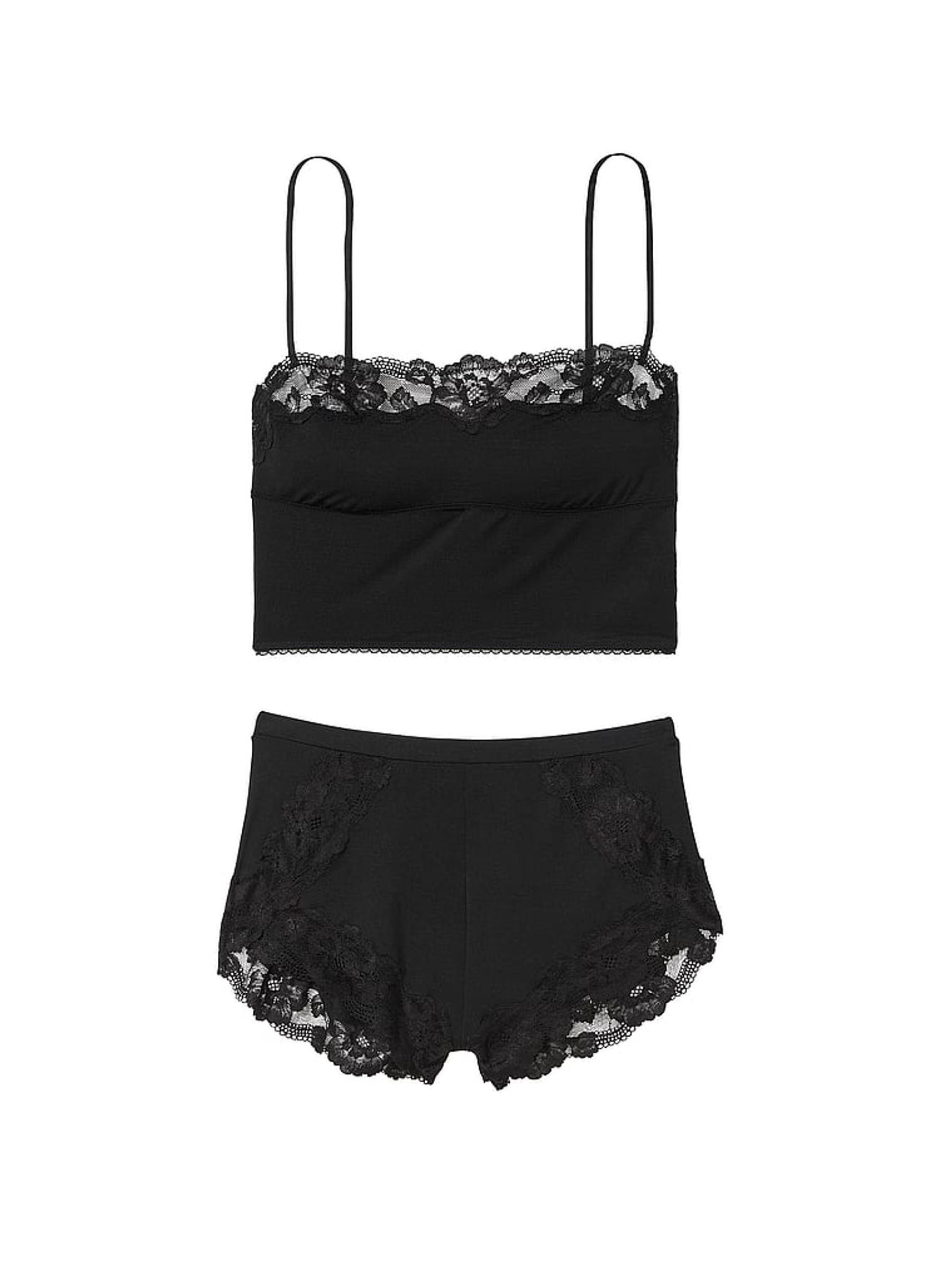 Black Straight Neck Modal Cami Set