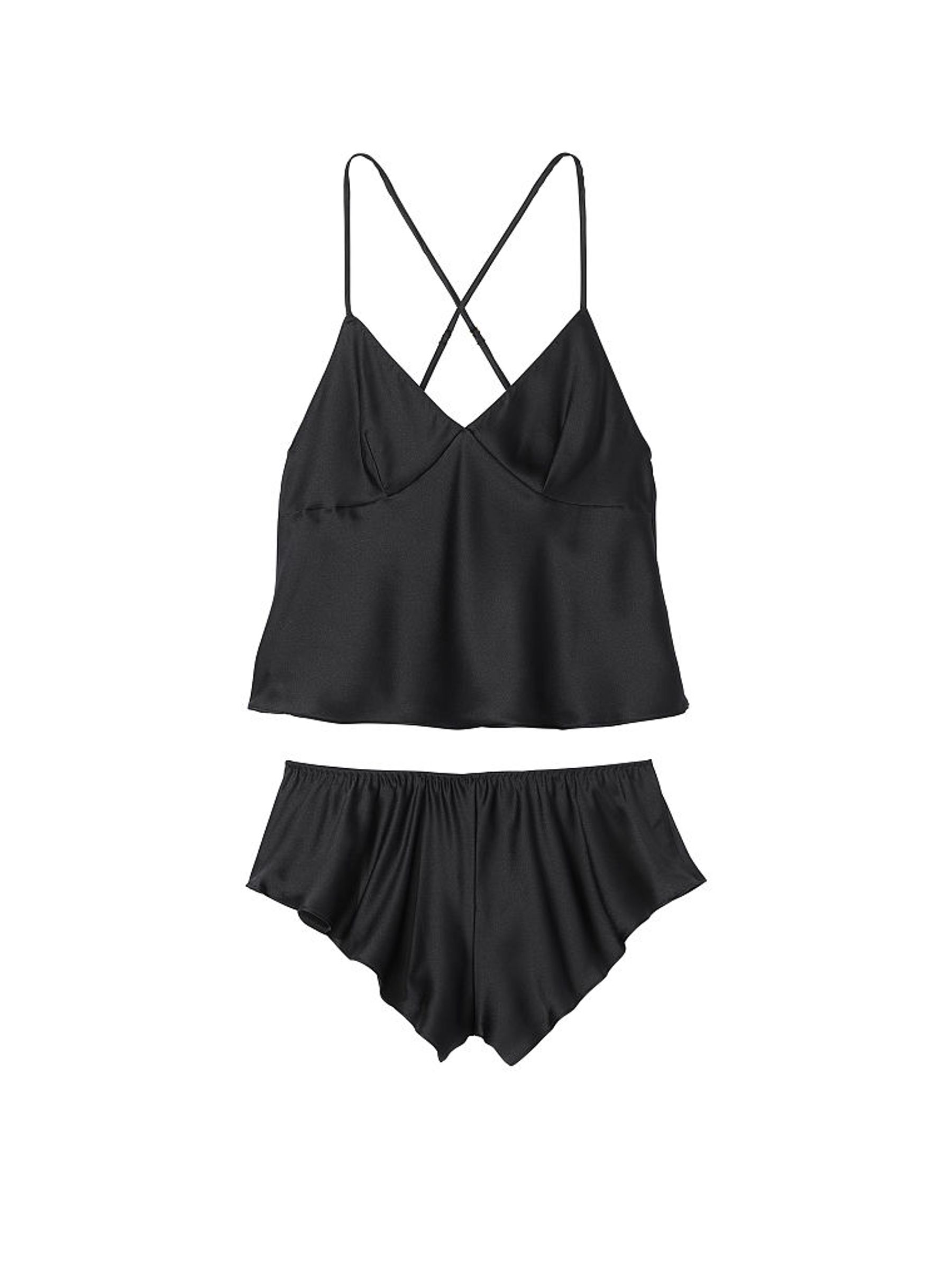 Black Satin Open Back Cami Set